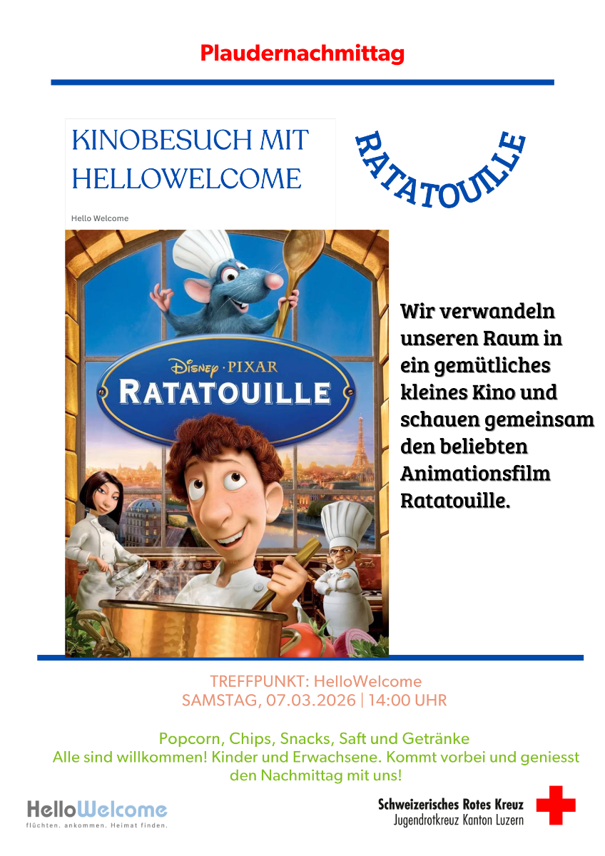 14:00–16 Uhr, Plaudernachmittag, Filmvorführung Ratatouille