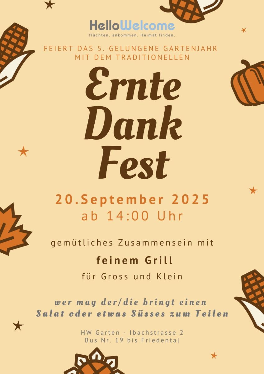 Mit viel Einsatz wurde gepflanzt, gejätet und gegossen. Die Mühe hat sich gelohnt: Die Ernte ist bunt und reichhaltig! Der HelloWelcome-Garten hat sich auch in diesem Jahr in eine wunderbare Oase verwandelt. Gemeinsam möchten wir die schöne Atmosphäre geniessen, grillieren und feiern. Alle sind willkommen!