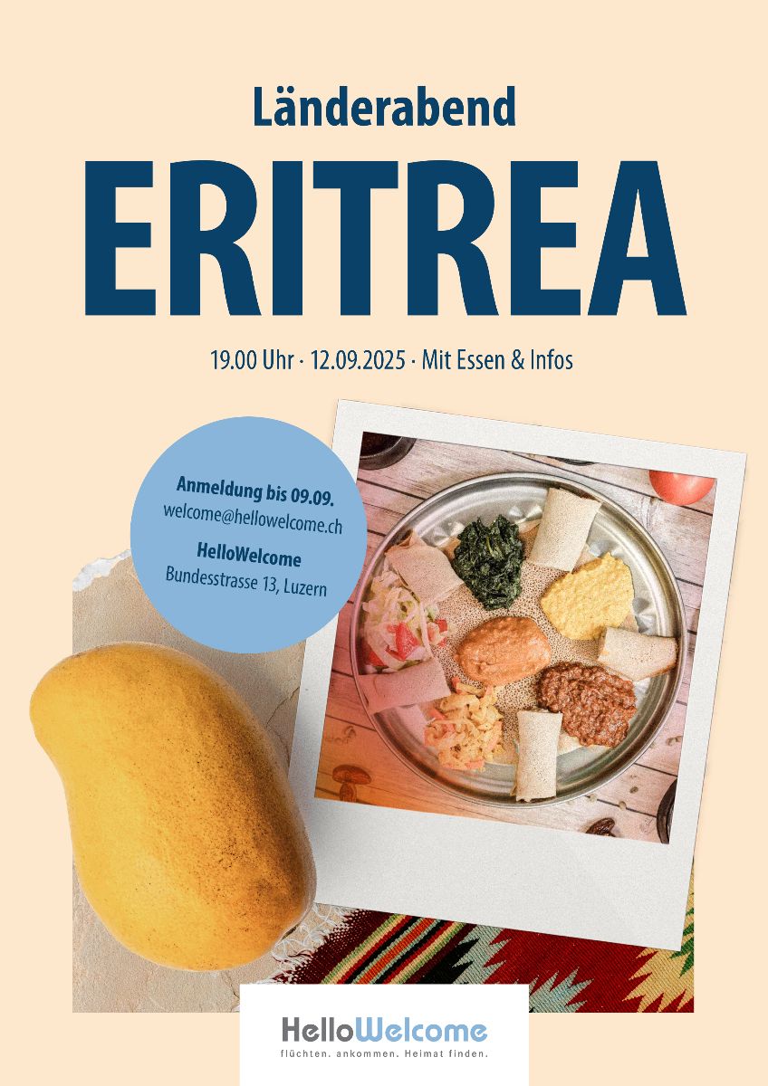 Geniesse gemeinsam mit uns eritreische Köstlichkeiten. Anmeldungen sind bis am 9. September an welcome@hellowelcome.ch möglich.